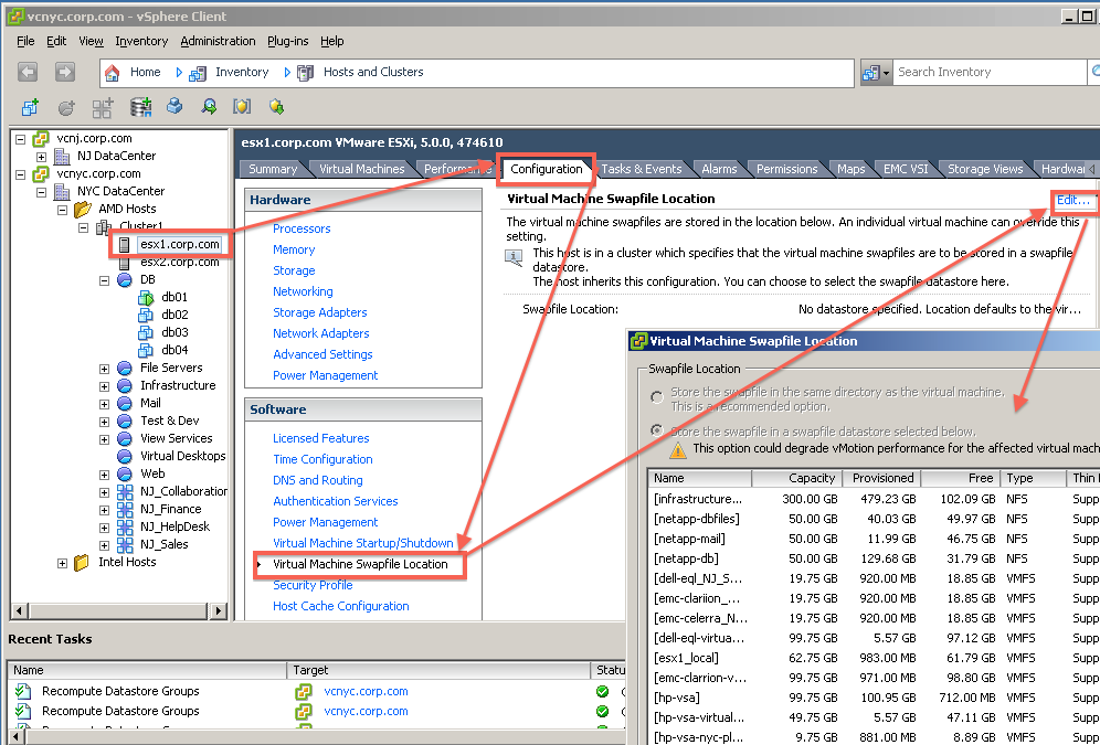 Launch the VMware vSphere Client, go to Hosts and Clusters, choose the required host, and then choose the required virtual machine. Hit Edit Settings from the menu that appears when you right-click the virtual machine. Another option is to choose Actions > Edit Settings.